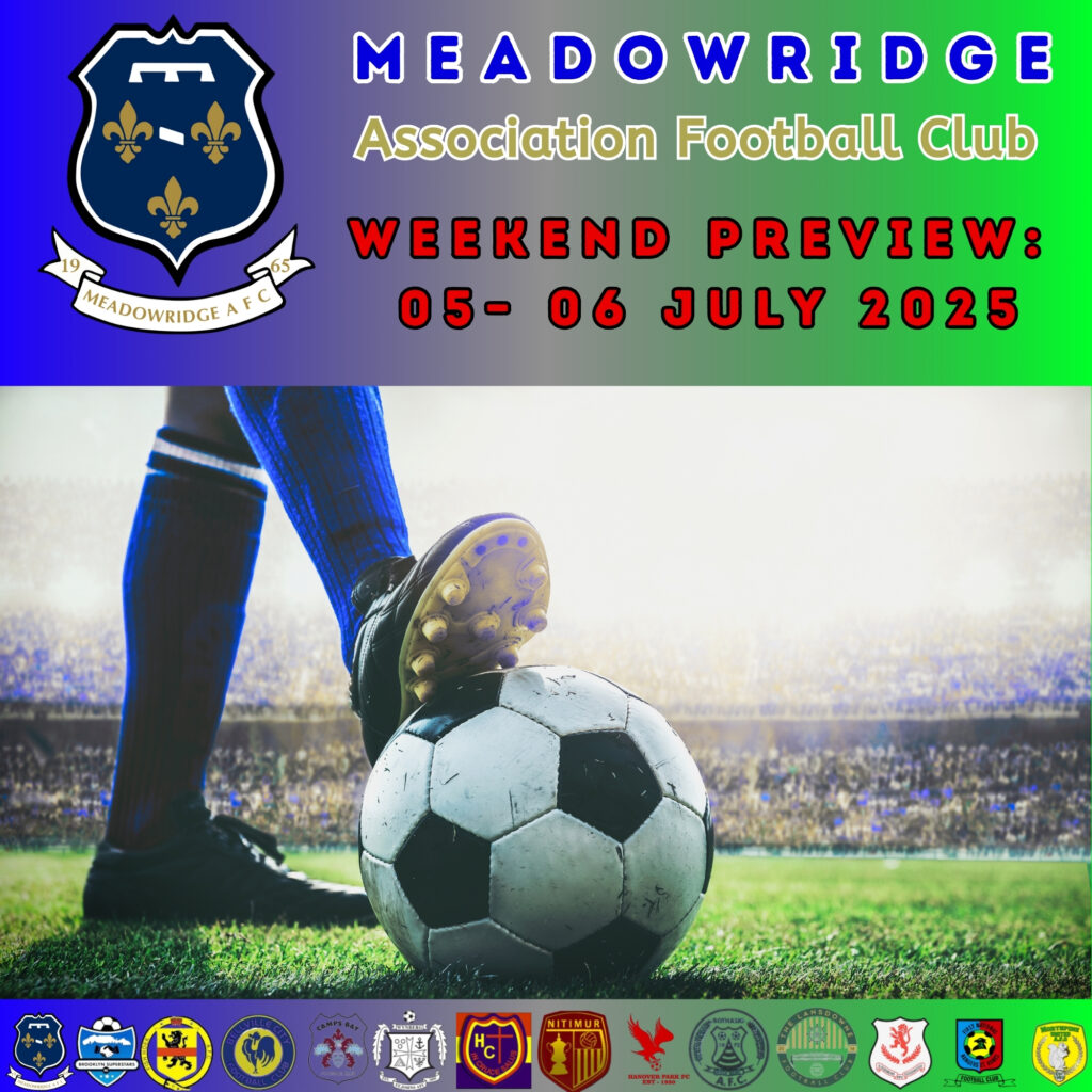 UncategorizedMEADOWRIDGE AFC Seniors Weekend Preview | MATCH WEEK: 05 – 06 JULY 2025 Posted on 02 Jul 2025 by Joe February 02 Jul Continue reading →